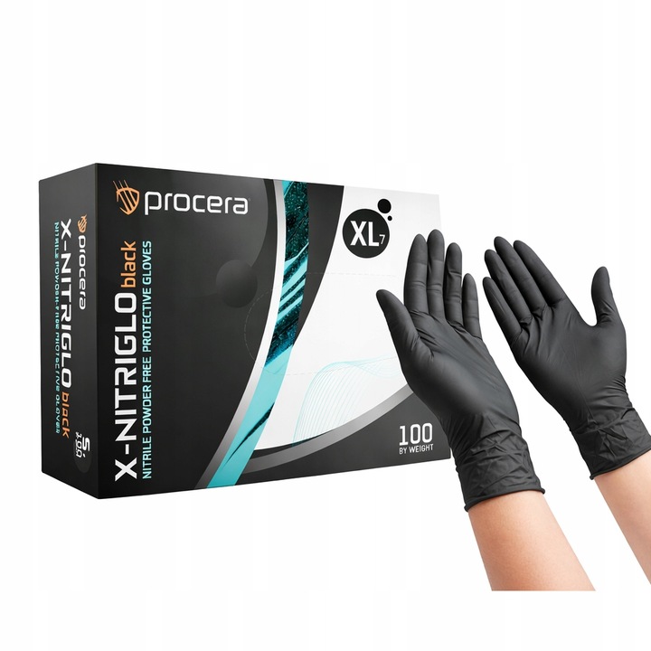 Bezpudrowe rękawice nitrylowe, niejałowe codziennego użytku. Kolor czarny. Zapewniają ochronę przed powierzchniowymi urazami mechanicznymi, kontaktem ze słabszymi środkami chemicznymi, pyłem i zabrudzeniami. Rękawice mogą być stosowane do kontaktu z żywnością.